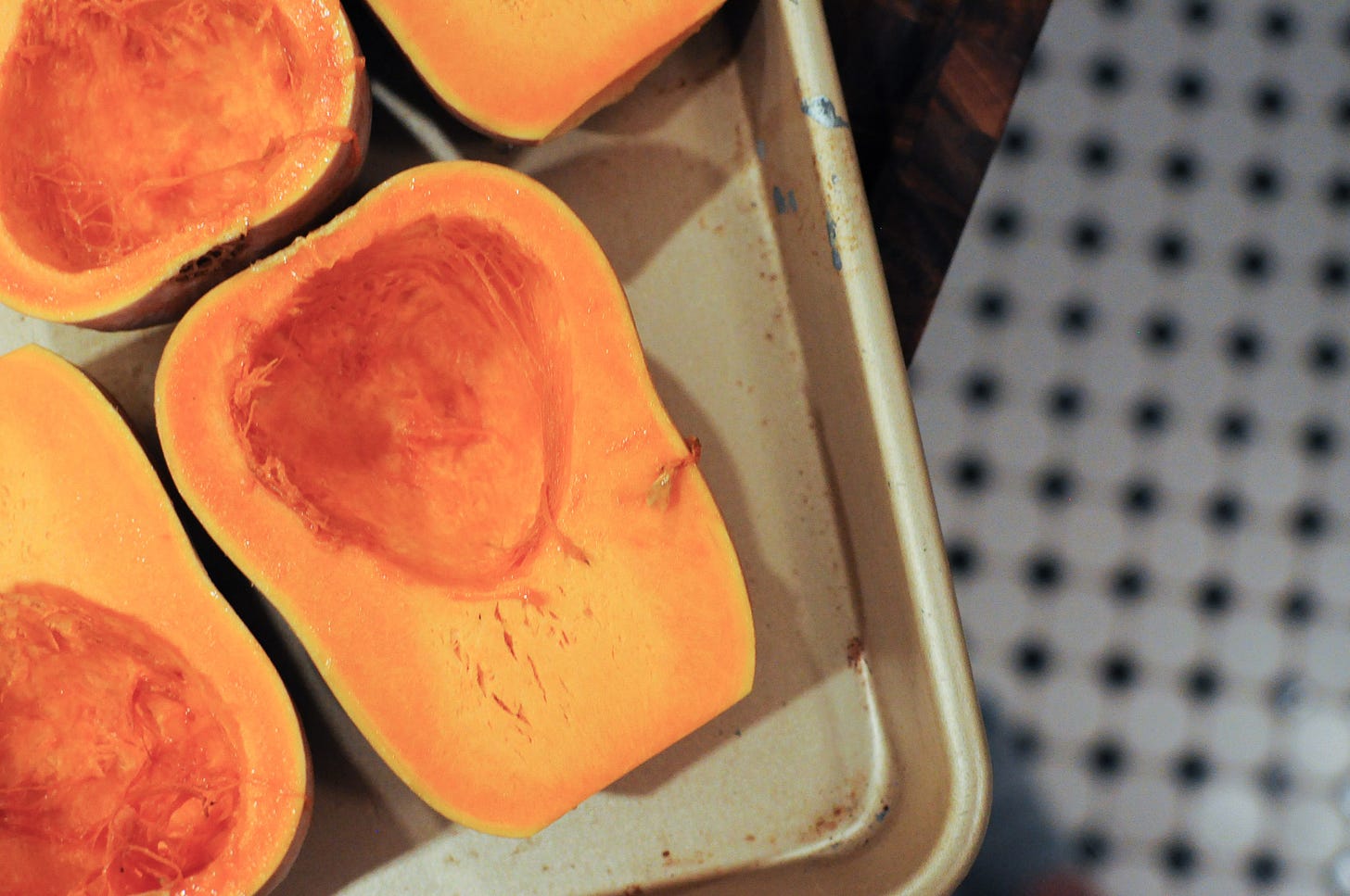 Squash cornbread — I’ve sang this recipe’s praises before. This time, we went through the effort of roasting the honeynut squash rather than using the shortcut can puree. I think I could taste a difference. It came out much richer than when I used the canned stuff.